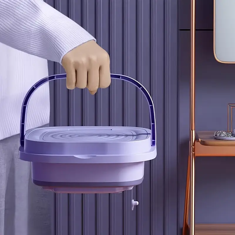 Discover the ultimate convenience in laundry care with this portable, collapsible mini washing machine. Its innovative and space-saving design makes it the perfect second washing machine for any household, especially for washing small and delicate items like baby clothes, undergarments, and socks separately to ensure hygiene. When not in use, the machine effortlessly folds down to a compact size, allowing for easy storage in small apartments, dorm rooms, or even for packing in your luggage for travel. The simple, user-friendly controls make operation a breeze. This compact powerhouse is a practical and efficient solution for your daily laundry needs, saving you time and money on larger loads while keeping your special items fresh and clean.